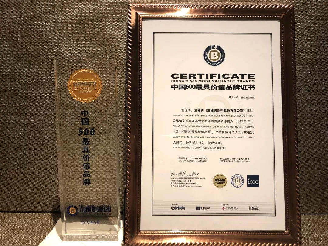 3TREES was ranked among the "China’s 500 Most Valuable Brands" for the 13th time according to the said monitoring report in terms of finance, consumer behavior and brand strength for a brand value of RMB23.985 billion, an increase of RMB4.467 billion over the previous year, ranking first in the coatings list.