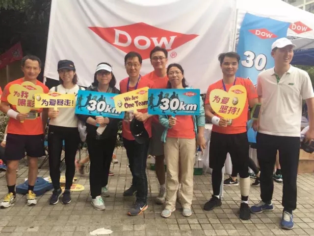 3TREES's Shanghai Office engineering and decoration paints teams, customers, distributors and Dow formed a "3TREES and Dow Walking Together" team for the competition.